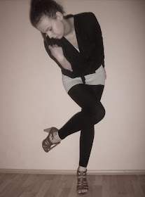 Sedela som v obývačke. Ako som pozerala von oknom, mala som nutkanie ísť do svojej izby, vybrať zo šatníka letné, prípadne jarné kúsky a nahádzať ich na seba. Tak sa aj stalo. Legíny, sačko, sivý svetrík a moje obľúbené sandále na vysokom podpätku. Na fotke vidno, že nesmeli chýbať načerveno nalakované nechty. U mňa klasika. Skoro som zabudla... Aj vlasy som si vyžehlila.