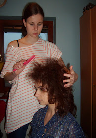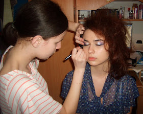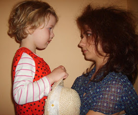 ... začali sme s Hanuškou fotiť. Vonku sme nemali čo robiť, tak sme sa "zložili" u nás. Priniesla si svoje obľúbené vecičky, doriešili sme vlasy ( silou mocou ich chcela natupírovať, čo už s ňou... :)) a make-up.