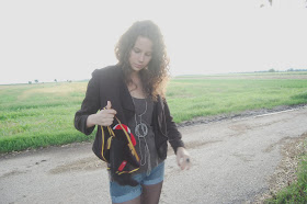 tvoje vlasy ! jsou neskutečně krásné, hned bych je vymněnila za moje ! :) jinak outfit velice pěkný a ten baťůžek to celé krásně oživil, krása ;)