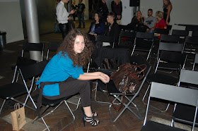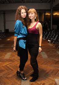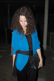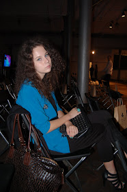 • Môj konečný "look", na ktorý ste boli takí zvedaví. Malo to byť niečo elegantné, tak ja som sa to "niečo" snažila "namiešať". Mojim prvotným plánom bol outfit s bielymi pančuškami, na ktorých som si ja šikovné dievča večer pred prehliadkou spravila očko. Nebolo teda iného (priznávam, bolo...) východiska ako obliecť si čierny overal, ktorý dlho ležal nevynosený na dne mojej skrine. A mne to bolo ľúto. Modrá blúza, brošňa, prstene, obľúbená taška a najvyššie topánky aké mám (zhodou okolností sandále) sa postarali o dvojfarebnú eleganciu.
